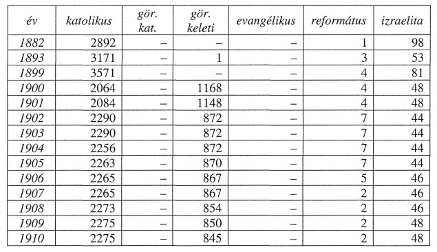 130 A hitehagyott személyek visszatérése a plébános jelentése szerint éves lebontásban a következőképpen alakult: 1899-ben 186, 1900-ben 44, 1901-ben 55, 1902-ben 26, 1903-ban 14, 1904-ben 26, 1905-ben 9 és 1906-ban 8. KFL. I. 1. b. Hercegszántó 1907/305/10.
