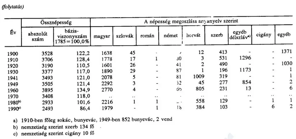 1970: A népességadat az 1973. évi helységnévtárból való. (Lásd a helységnévtáraknál).