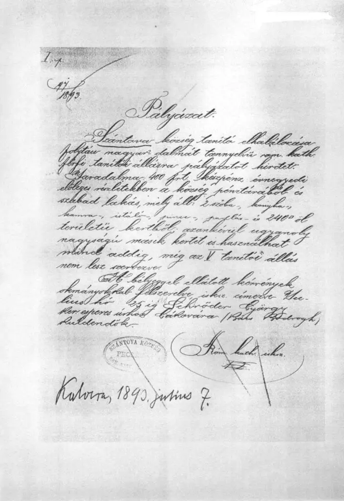 21. Hercegszántó Plébánia Hivatal Irattára; 1893.