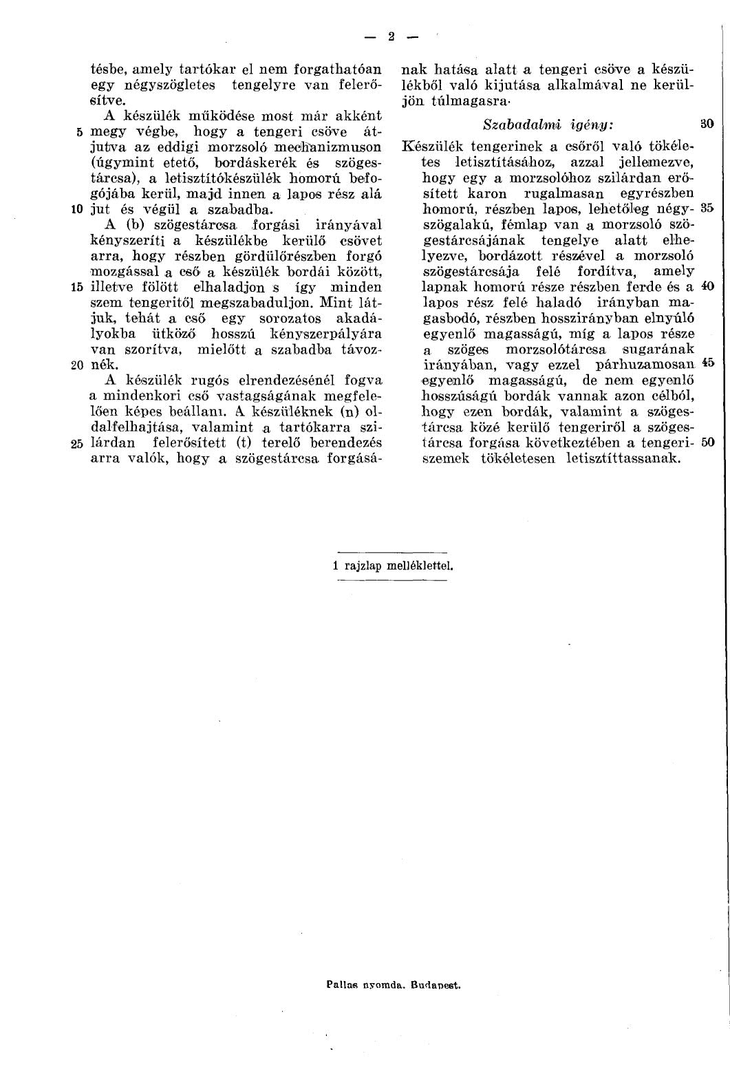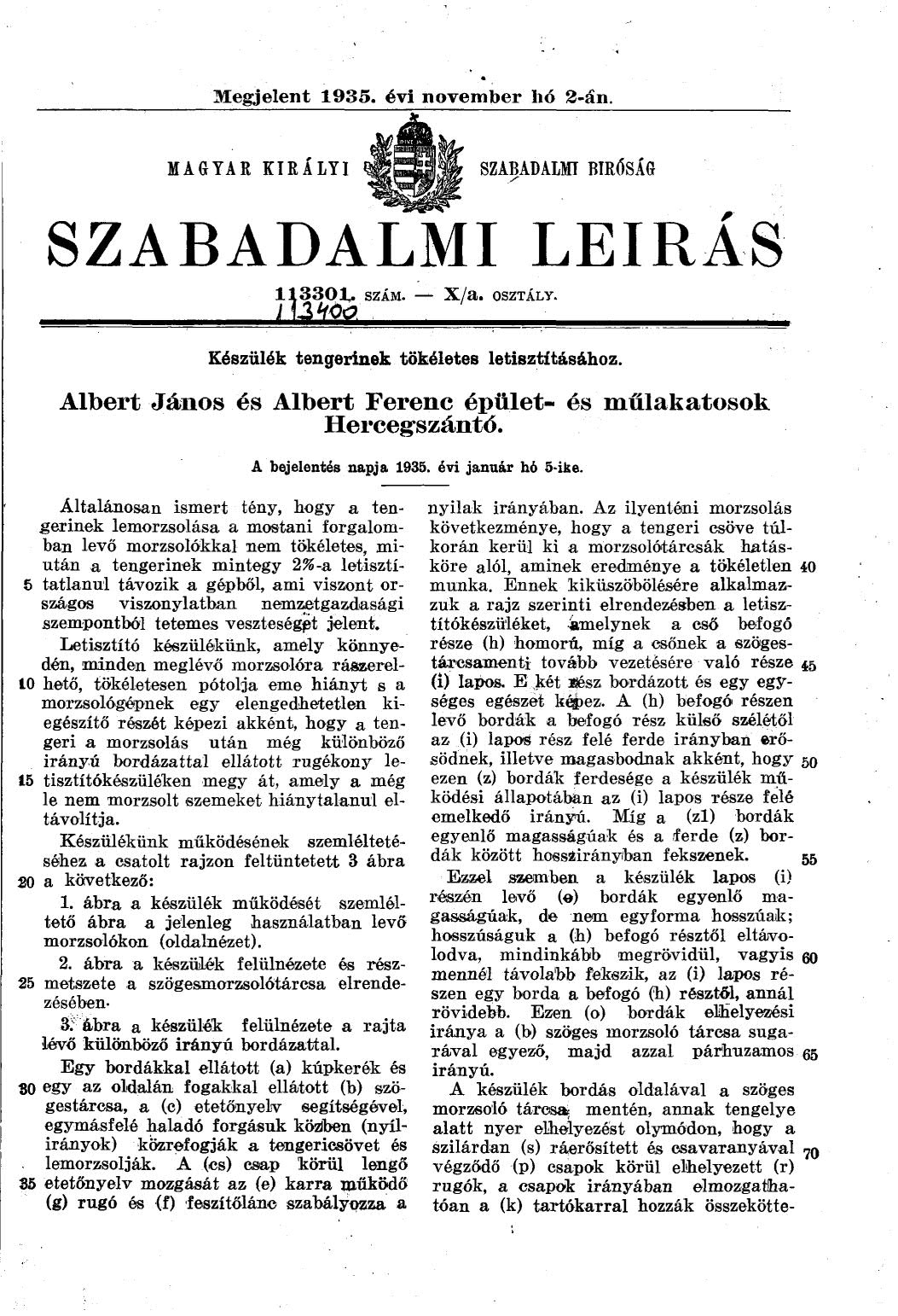 113301. lajstromszámú szabadalom • Készülék tengerinek tökéletes letisztításához