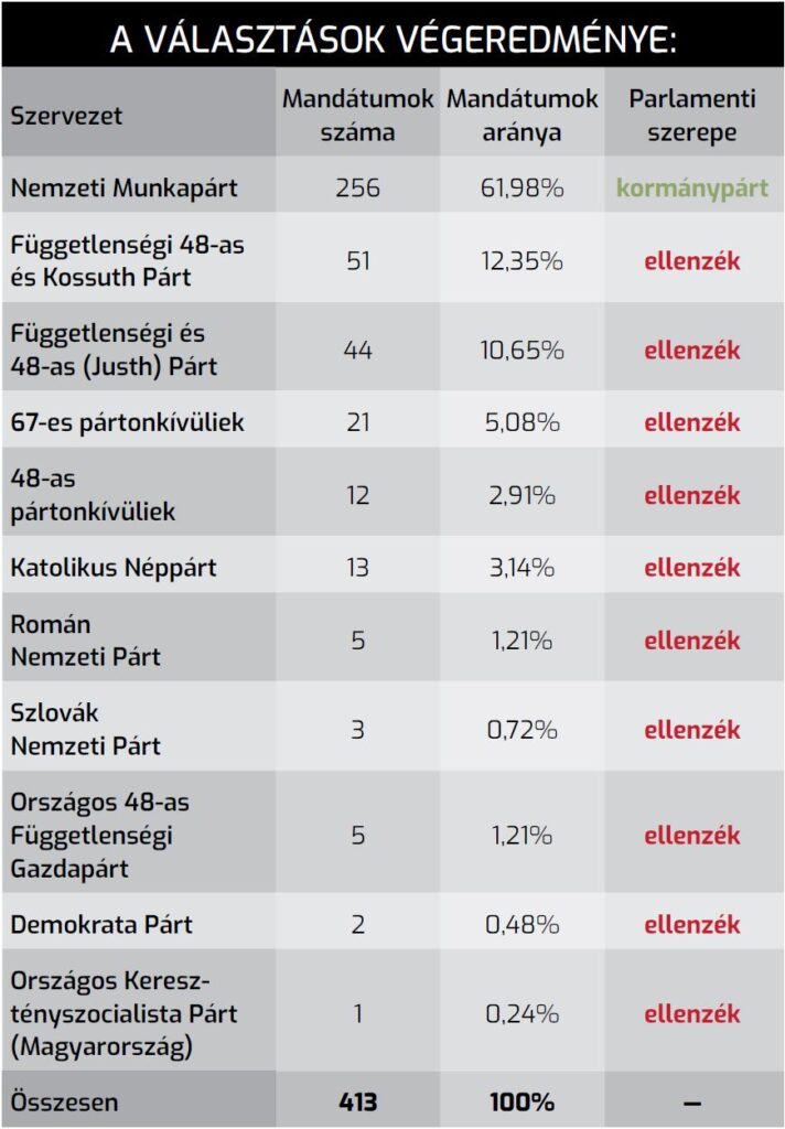 Forrás: Magyarországi országgyűlési választások a dualizmus korában, Wikipedia