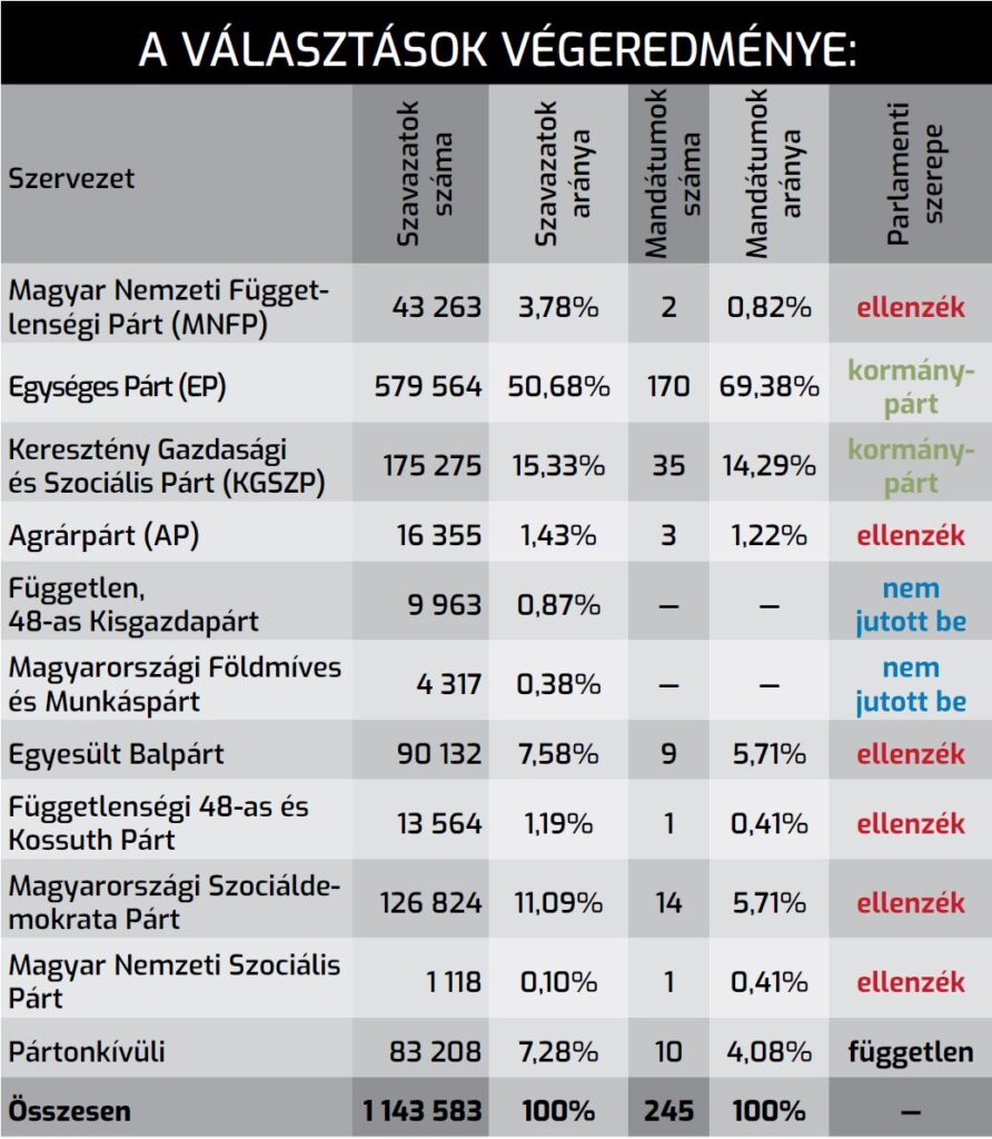 A választás végeredménye: