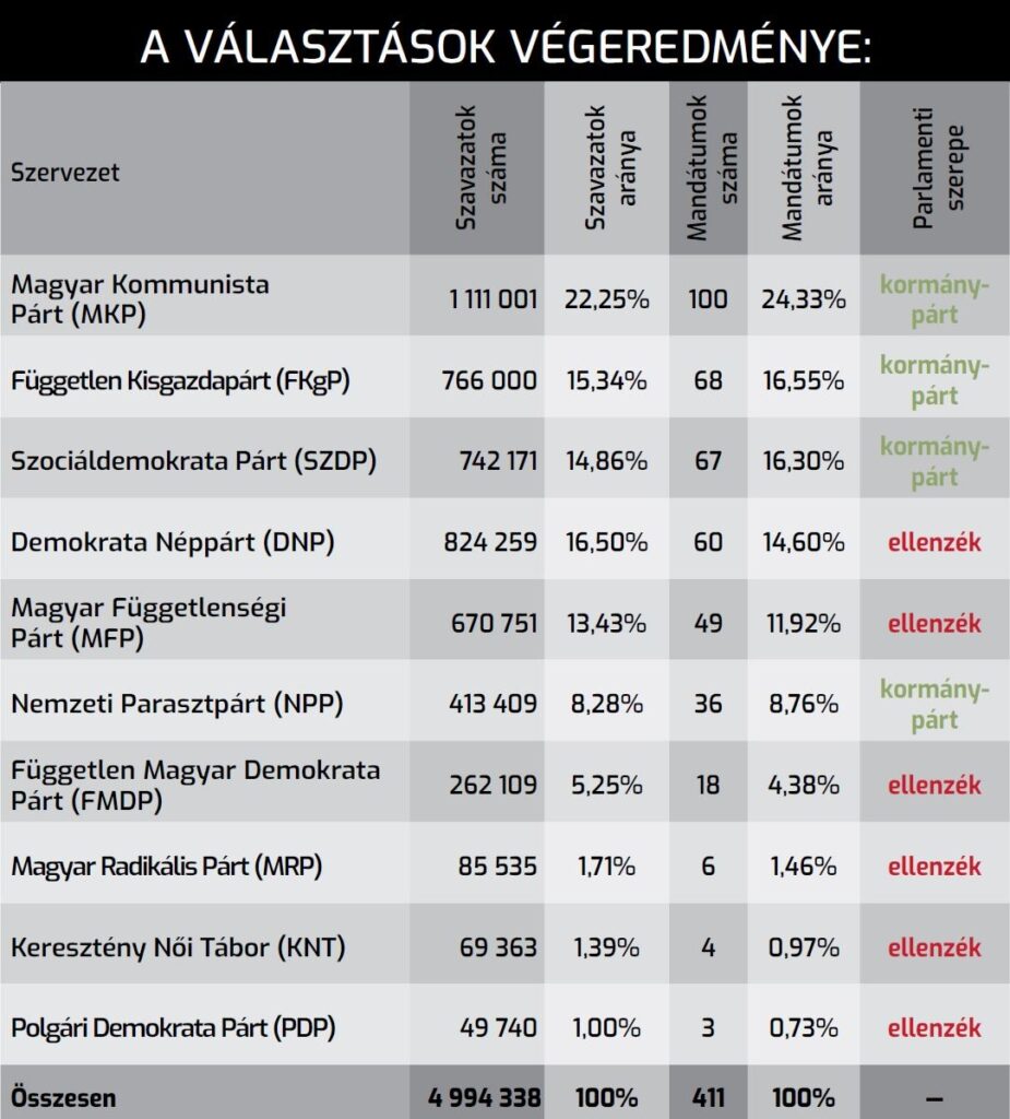 Amíg azonban ez nem történt meg, az FKGP-nek és az ellenzéki pártoknak együttesen többségük lehetett volna a parlamentben. Elvileg ellenzékbe is szoríthatták volna a Baloldali Blokkot. Hogy ehelyett mi történt – azt sorozatunk következő részében meséljük el.